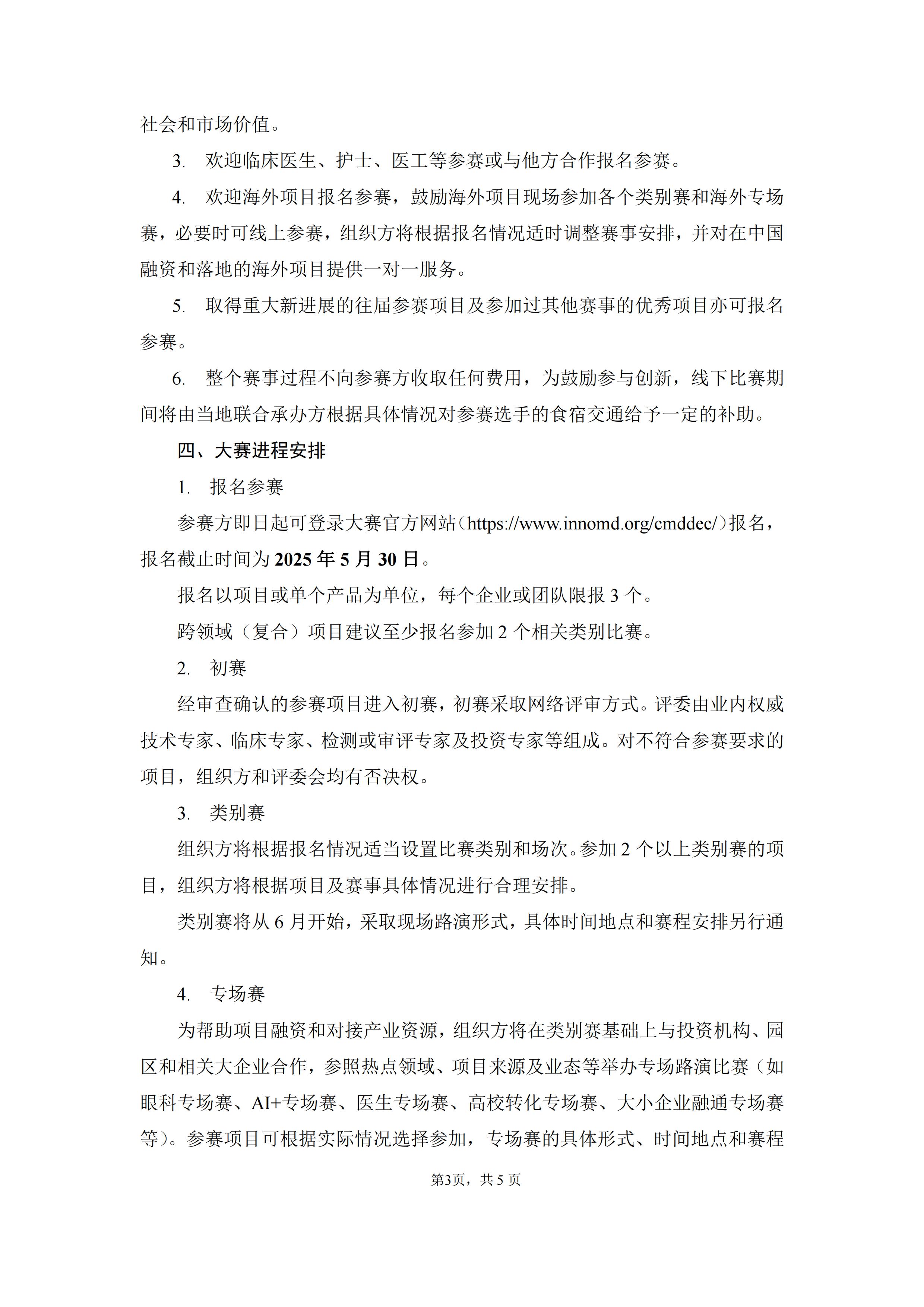 参赛方即日起可登录大赛官方网站(医疗器械创新网网://sanahediye.com/cmddec/)报名,报名截止时间为2025年5月30日。